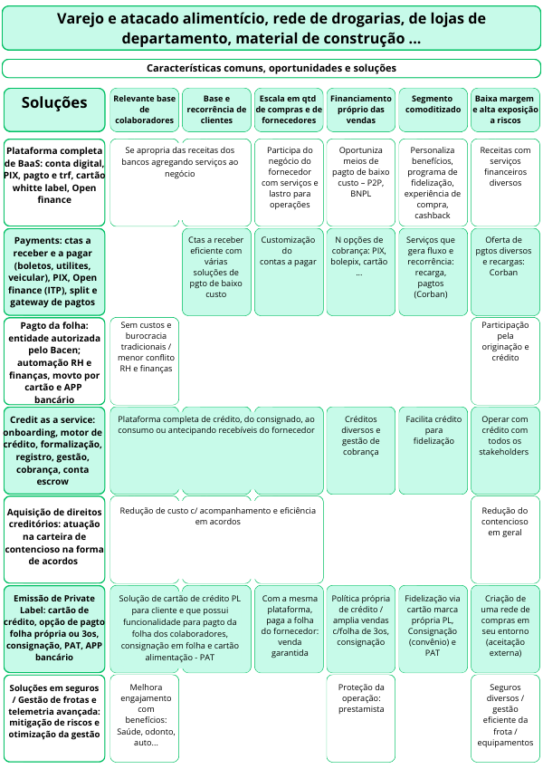 Características comuns em alguns segmentos vs oportunidades de negócios